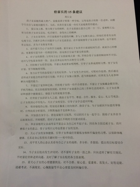 宁波外国语周长安校长给2015年新初一家长的15条建议