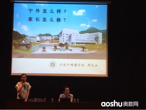 家长大会,开始前先给家长们放了学生在宁外一天生活学习的视频,杨老师开场,周长安校长演讲