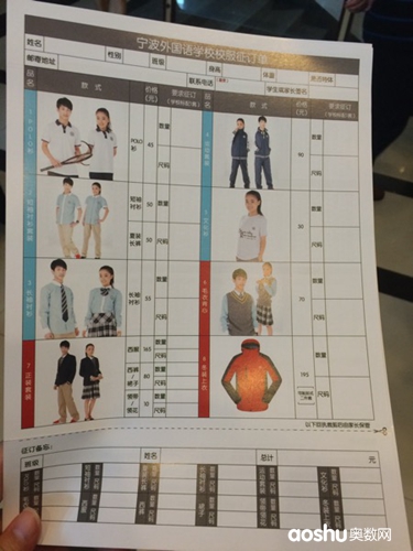 校服征订单长这样的