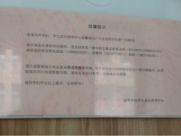 寝室门口的通知