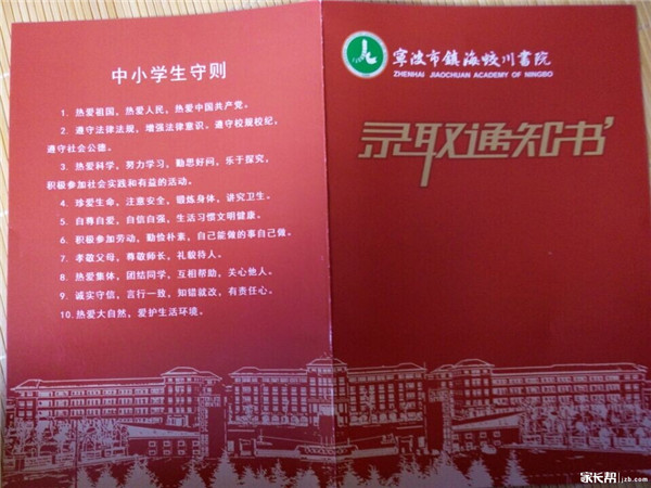 宁波奥数网:2015年宁波小升初早已经结束,目前进入初一新生开学报到、领取暑假作业、分班考试的时间,2015年7月4号宁波蛟川书院进行了分班考试,来看看家长的分享:2015宁波蛟川书院入学通知书是这样子的。