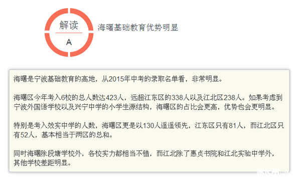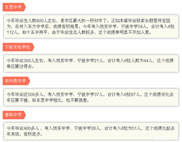 2015年宁波城区前6所优质高中录取分布(2)