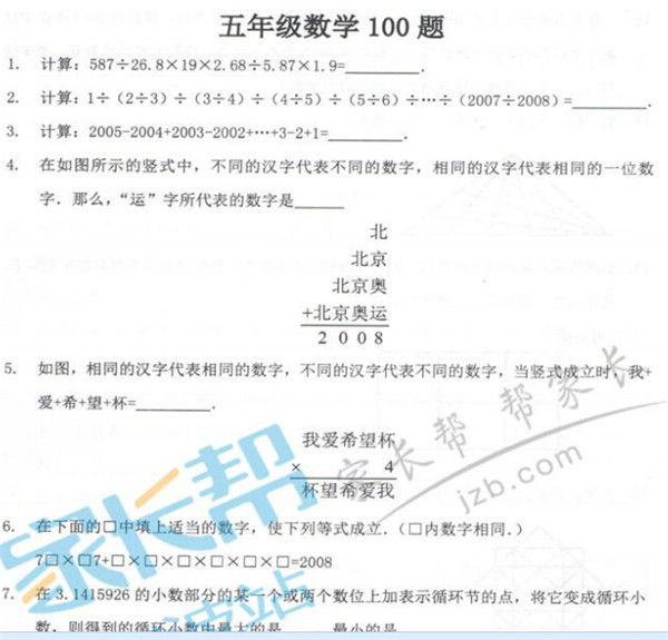 2015第六届睿达杯五年级数学考前100题试题及答案 宁波奥数网 2015-10-20 18:18:46 宁波奥数网:2015年第六届睿达杯五年级数学考前100题试题及答案整理汇总如下。 点击下载>>>2015第六届睿达杯五年级数学考前100题试题 进入下一页:查看试题答案 首页 上一页 下一页 尾页