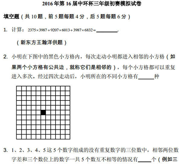点击下载>>>>2016年中环杯三年级初赛模拟卷(完整版)
