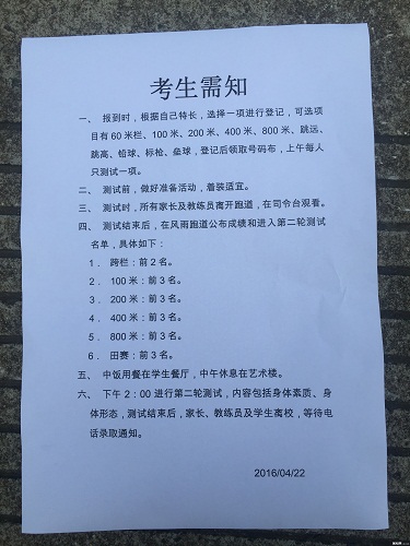 2016年蛟川面向全省招收小学应届田径特长生10名 。4月22日,蛟川特长生进行招生测试。这是前方热心家长发给小编的图集。
