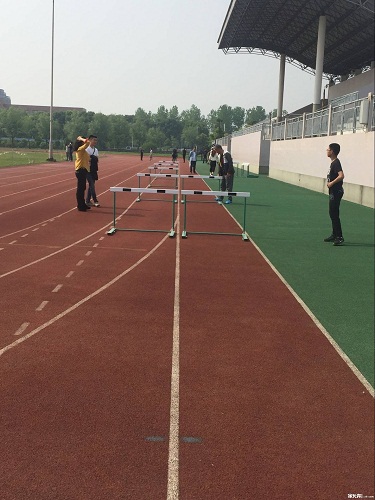 看,跨栏已经开始摆放,本次测试9点半开始!考生们加油哦!