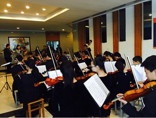 在音乐厅的大厅,宁外的学子向大家展示了宁外的特色之一,音乐。