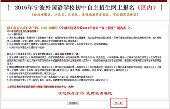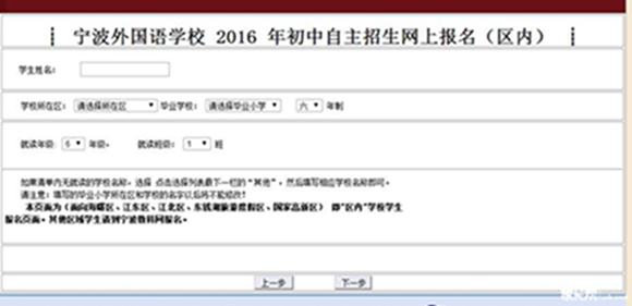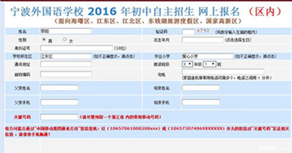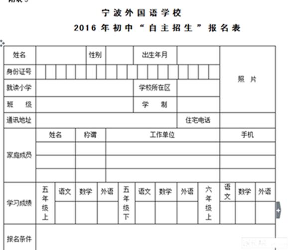 注意:网上报名完成后请下载、打印 和填写《宁波外国语学校2016年初中“自主招生”报名表 》。