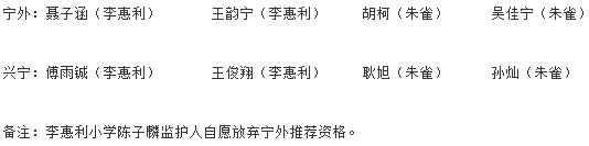 2016宁波市李惠利(朱雀)小学宁外兴宁推荐名单