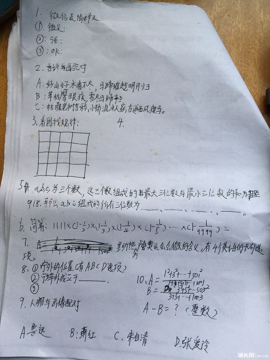 宁波奥数网:据第一批孩子出来介绍,面谈先在一个房间看试卷40分钟,再去另一个房间十分钟口述答题。总共18道大题,英语题偏多,其中有两道奥数题,四道题跟科学有关,一篇英文阅读题。这个小男孩表现很棒哦,很有自信!看好他!