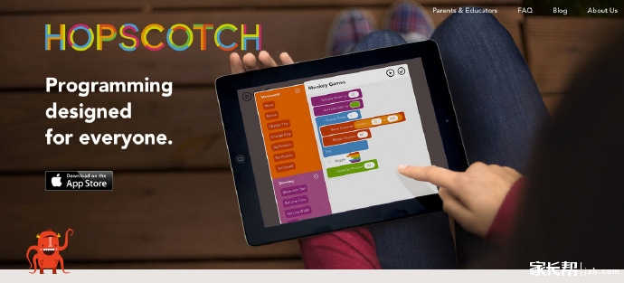 Hopscotch的宣言是为每个人设计编程。通过使用Hopscotch,你可以很轻松的教授给你的孩子基本的编程知识。目前Hopscotch应用只针对iPad用户提供免费下载。Hopscotch可以让你的孩子在通过拖拽代码块来完成对游戏、故事、动画和其它交互式程序的开发。总之,这是一款只需要在iPad上通过摇晃、倾斜甚至呼喊就能完成程序字符控制的工具。