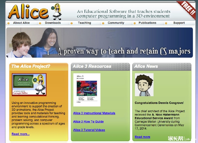 Alice一个可免费使用的3d编程工具,它支持创建一个讲述故事的动画,并在网络上将交互行为和视频进行分享。Alice的主要目的是给你的孩子接触基本的面向对象编程。通过使用Alice,学生可以学习如何创建动画电影(包含人、动物和车辆)和简单的视频游戏。