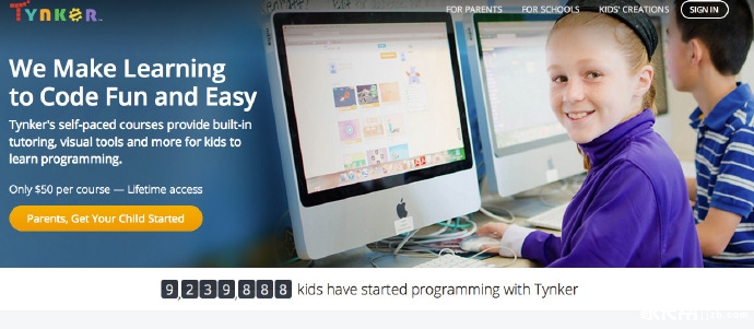 Tynker是一款在线编程学习系统,它的目的是为了激励孩子们将他们的创意转化为游戏、项目和动画故事,并将他们的应用程序在网络上进行传播。Tynker使用简单的可视化编程语言,不需要编程语法,而只需要将代码块组合起来就可以创建项目。当你支付一笔费用后,你可以获得它的终身访问权,并能够获得他们提供的在线课程、智力游戏集和夏令营等服务。