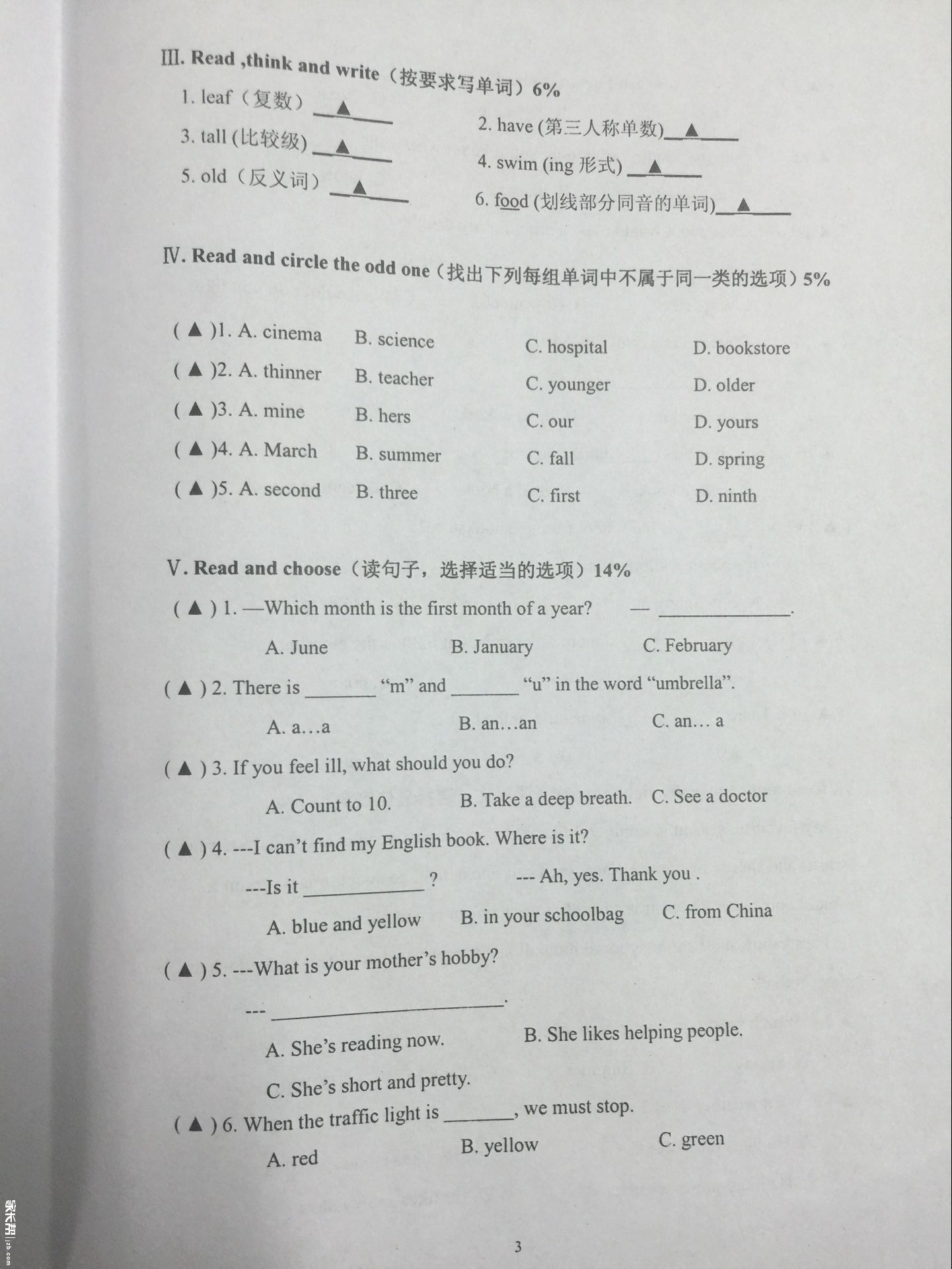 2016年宁波海曙区小学六年级毕业考英语试卷(3)