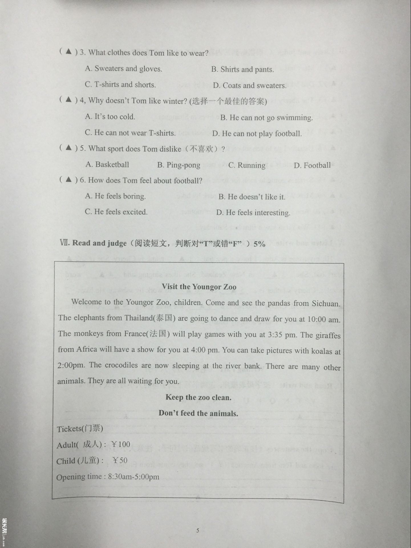 2016年宁波海曙区小学六年级毕业考英语试卷(5)