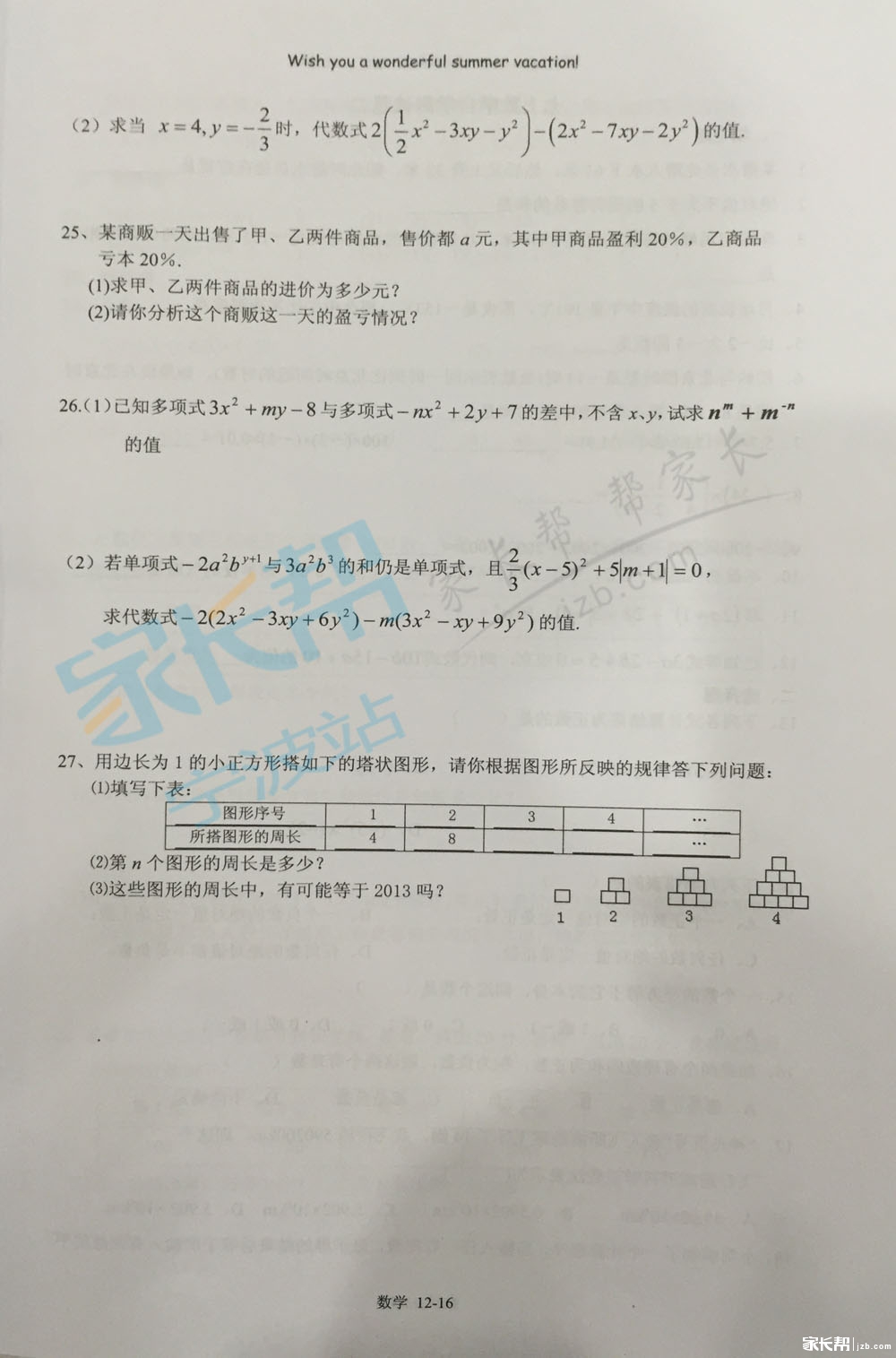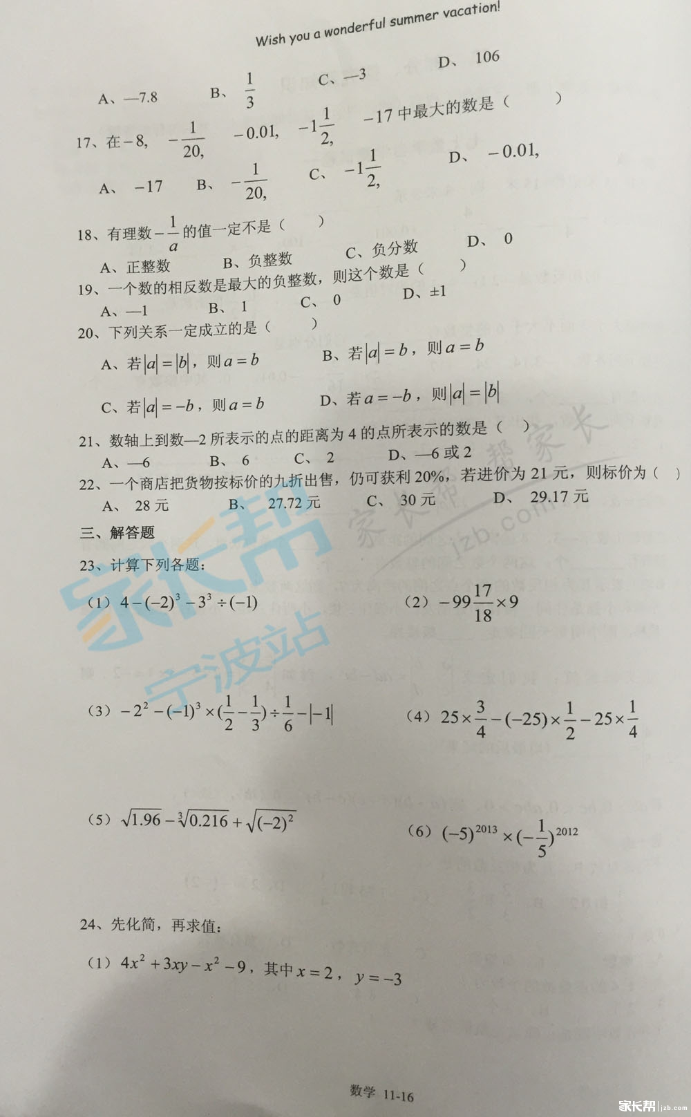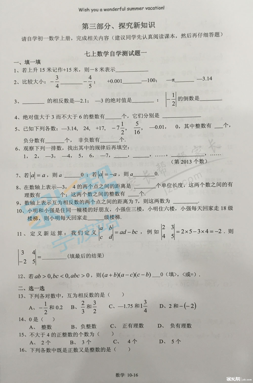2016年宁波外国语初一新生的暑假作业(9)