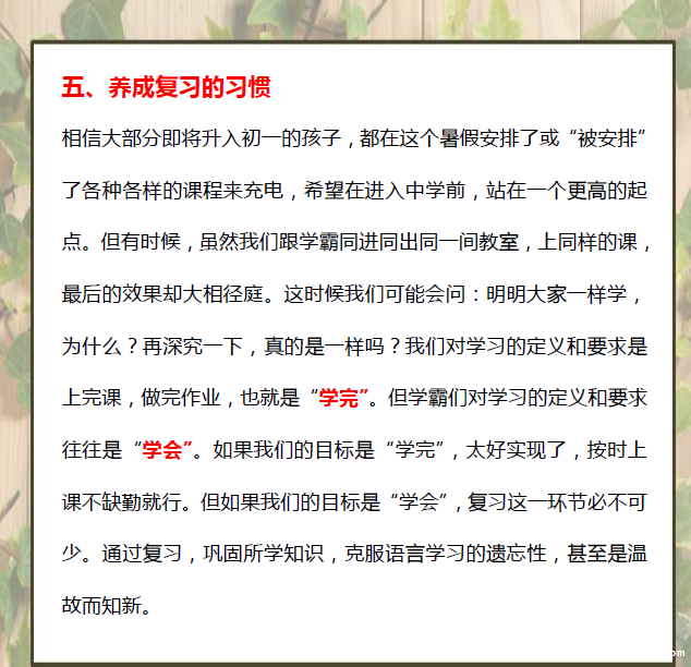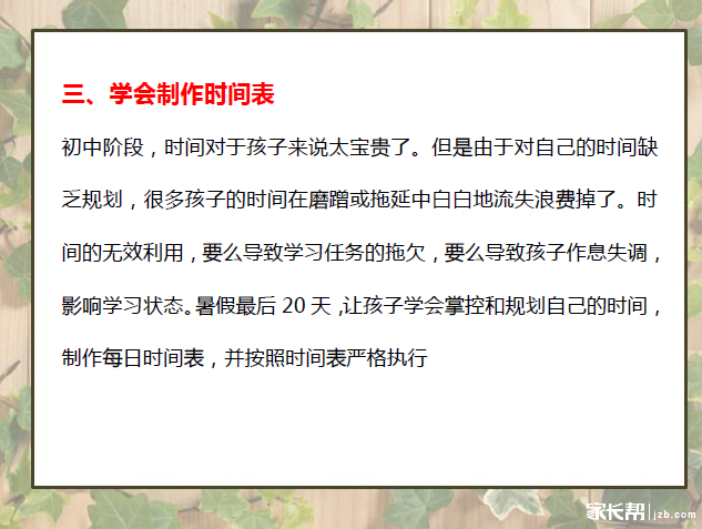 暑假最后20天,同学们在享受假期的同时,可以做好以上五件“小事”,让自己以更好的状态迎接全新的中学生活。祝愿大家都能度过愉快充实的,充满成就感的初中三年^_^