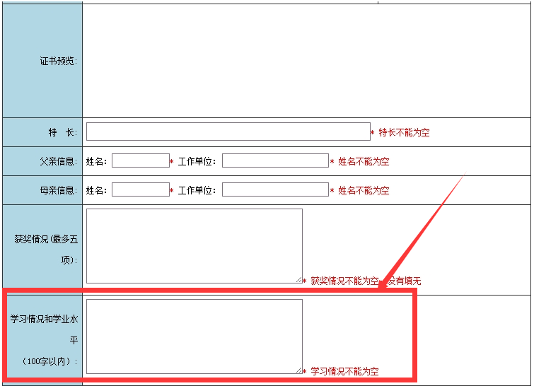 这张图片我们需要注意到的点就是学业水平的问题,关于这一点我们只需要按照我们的实际情况来进行填写就好,不需要过多的夸张,将自己的实际情况说出来就可以了。
