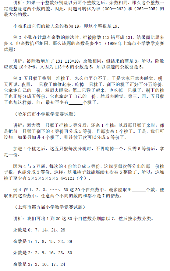 宁波小学奥数解题思路讲解:余数问题(3)