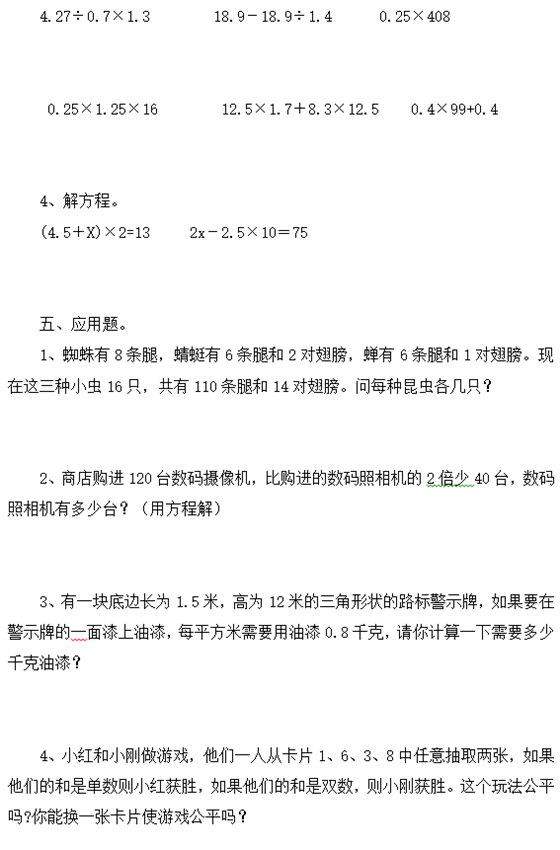 宁波小学五年级上册数学期中试题(五)(3)