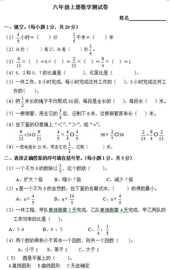 宁波奥数网:宁波小学六年级期中考试马上就要到了,大家也开始为期中考试着手复习。宁波奥数网小编为大家整理了一些六年级人教版小学试题。希望对大家有所帮助。