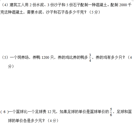 宁波小学六年级上册数学期中试题(一)(4)