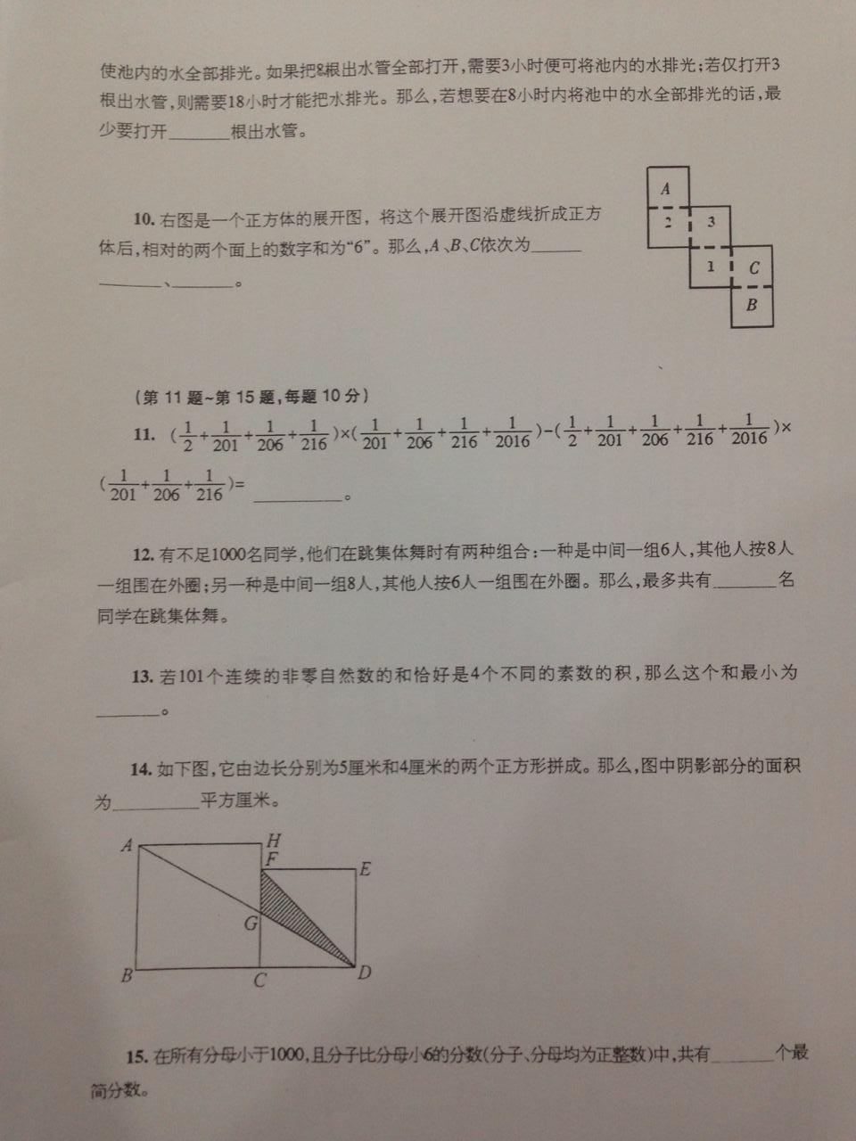 2017年第十五届宁波小机灵杯初赛五年级试卷(2)