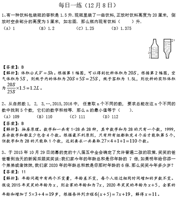宁波小学六年级奥数天天练(2016.12.8)(2)