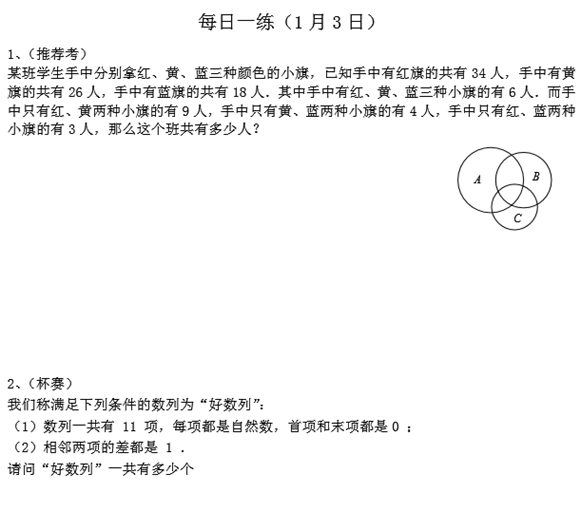 宁波小学六年级奥数天天练(2017.1.3)