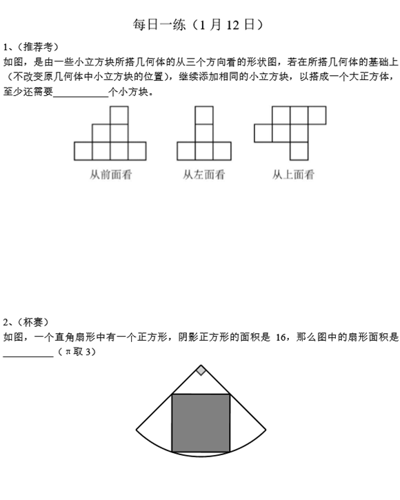 宁波小学六年级奥数天天练(2017.1.12)