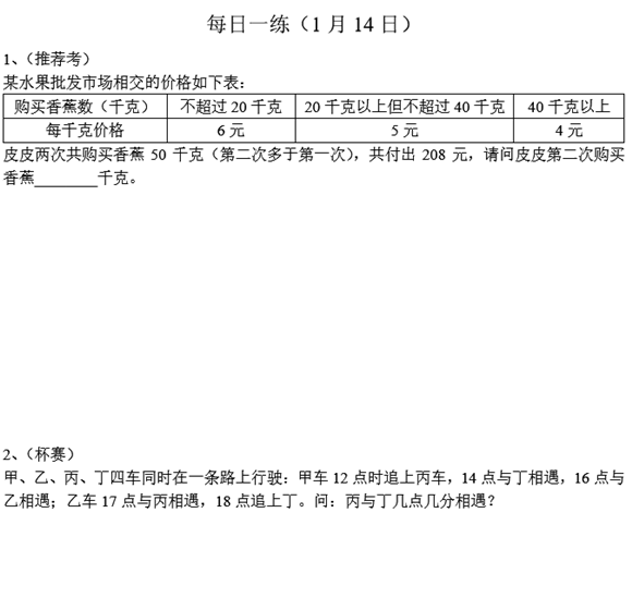 宁波小学六年级奥数天天练(2017.1.14)