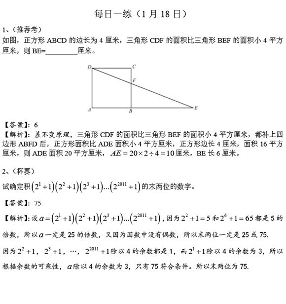 宁波小学六年级奥数天天练(2017.1.18)(2)