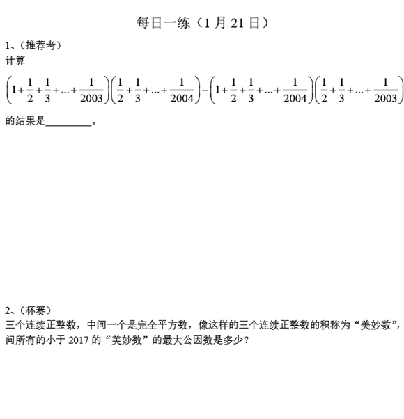 宁波小学六年级奥数天天练(2017.1.21)