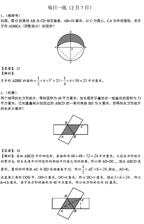 宁波小学六年级奥数天天练(2017.2.7)(2)