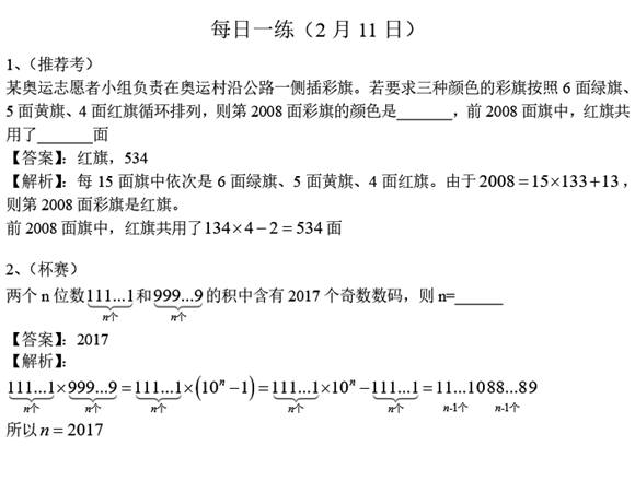 宁波小学六年级奥数天天练(2017.2.11)(2)