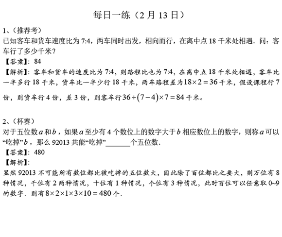 宁波小学六年级奥数天天练(2017.2.13)(2)