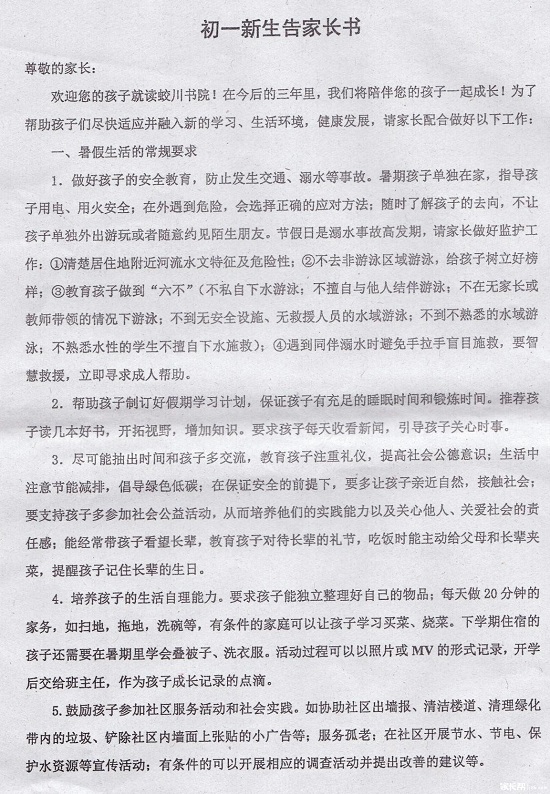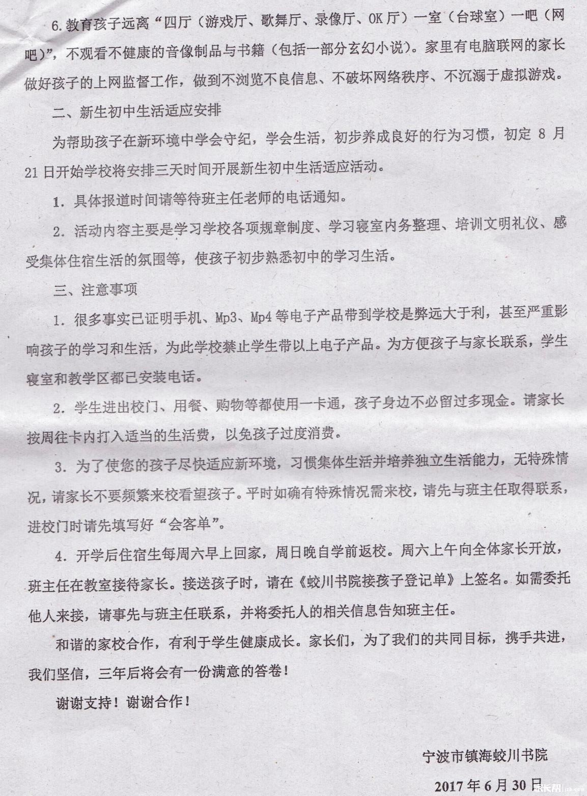 2017年宁波蛟川书院暑期作业及军训时间表(2)