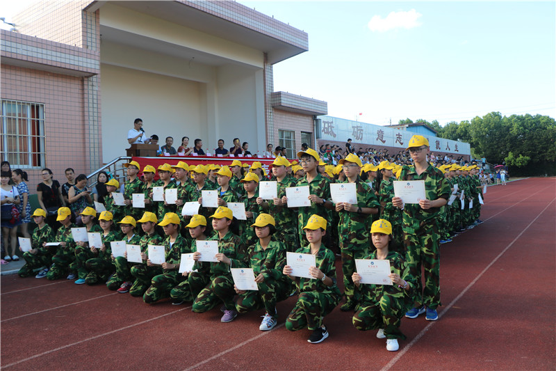 经过四天半紧张的训练,实验中学2017级新生圆满完成了各项军事训练任务。今天下午,新生军训汇报演出在操场上圆满落下帷幕。