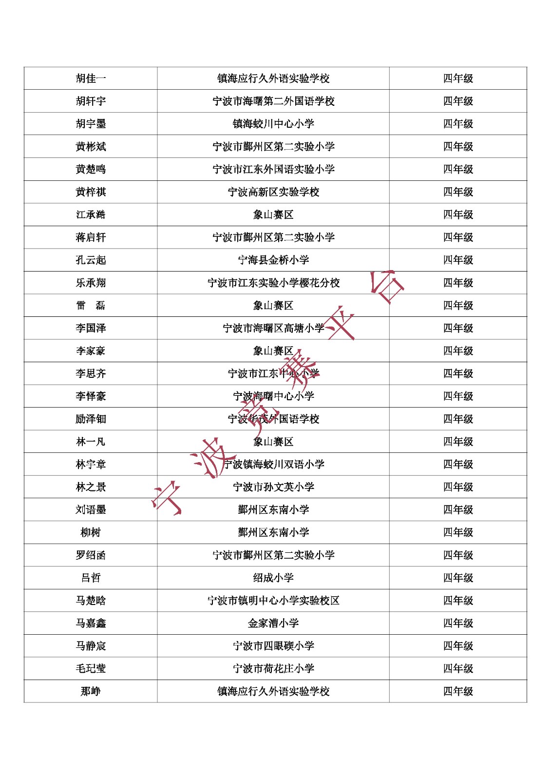 2017年第12届IYMC国少赛四年级晋级名单(2)