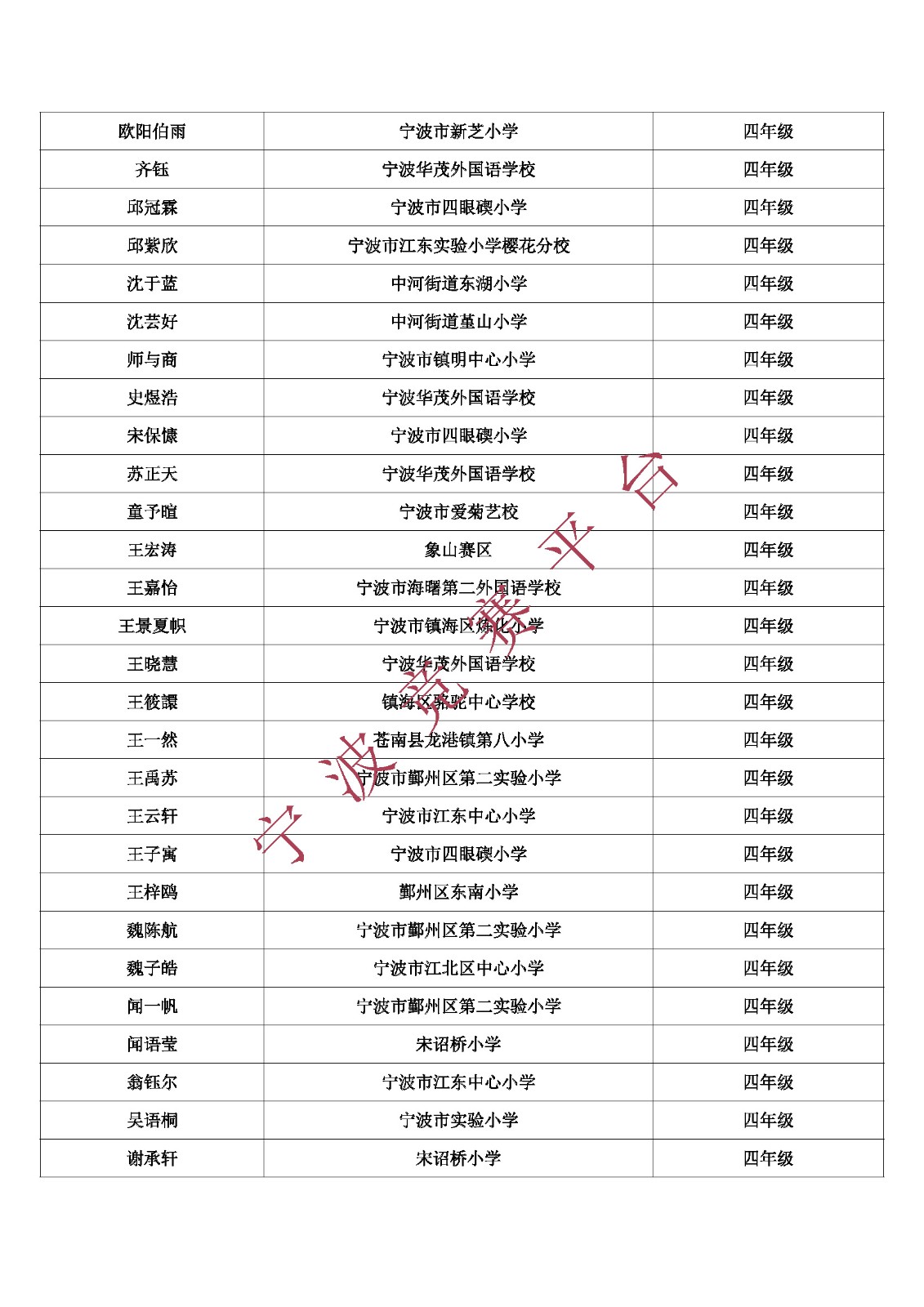 2017年第12届IYMC国少赛四年级晋级名单(3)