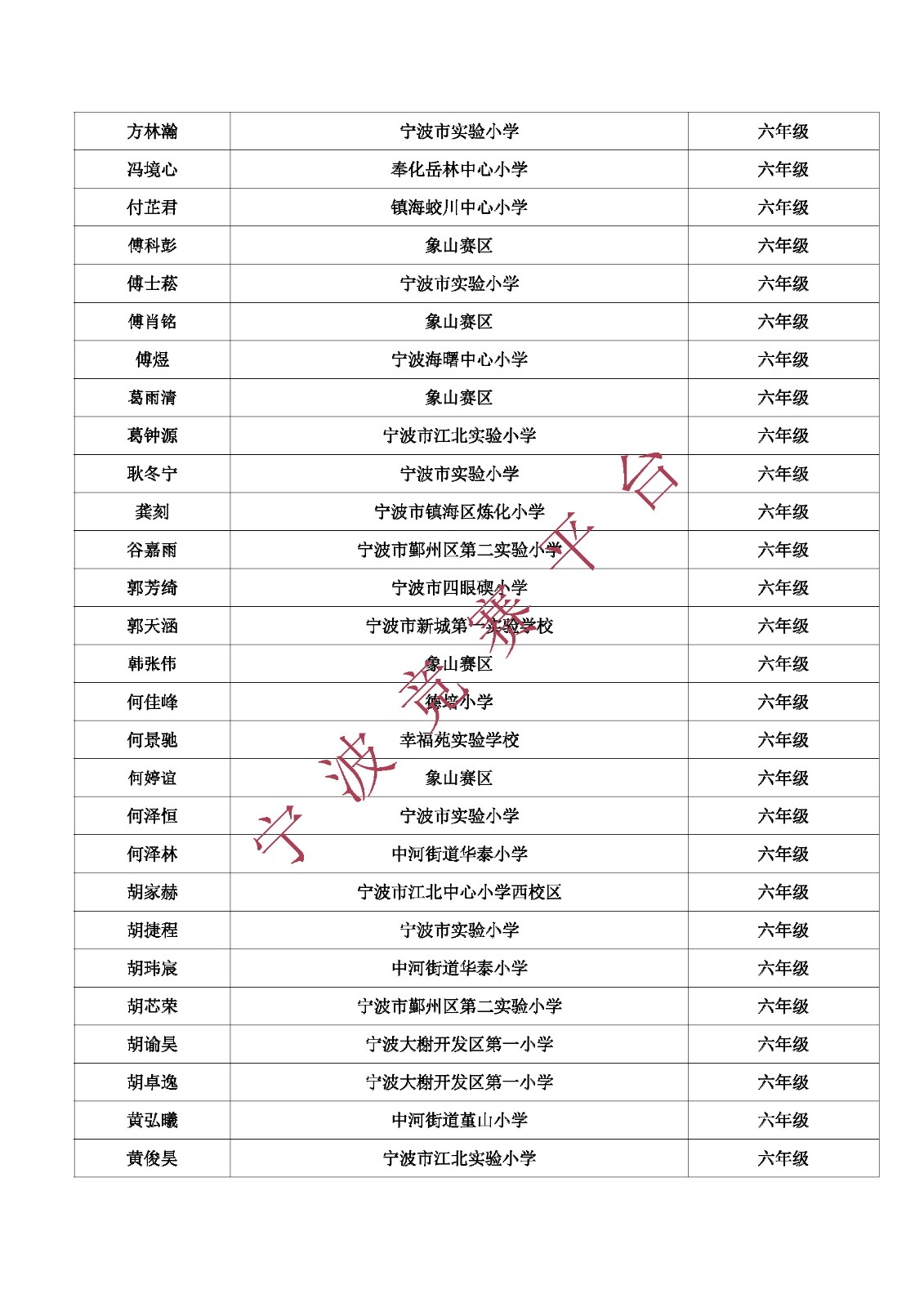 2017年第12届IYMC国少赛六年级晋级名单(2)