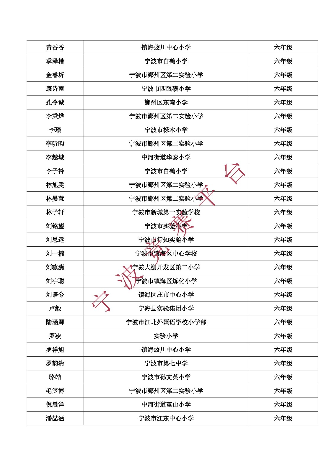 2017年第12届IYMC国少赛六年级晋级名单(3)