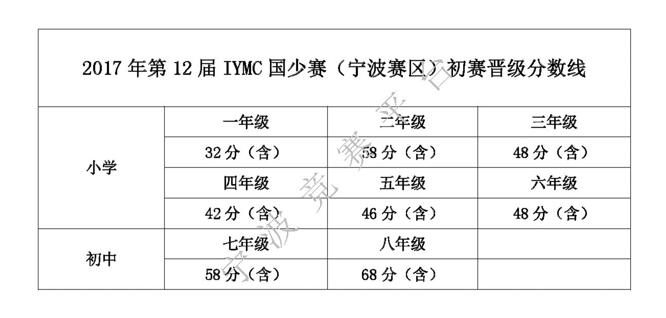 2017年第12届IYMC国少赛宁波晋级名单