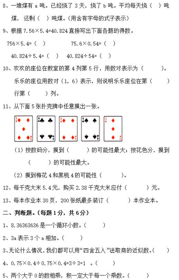 宁波小学五年级下册数学期中试题(二十)(2)