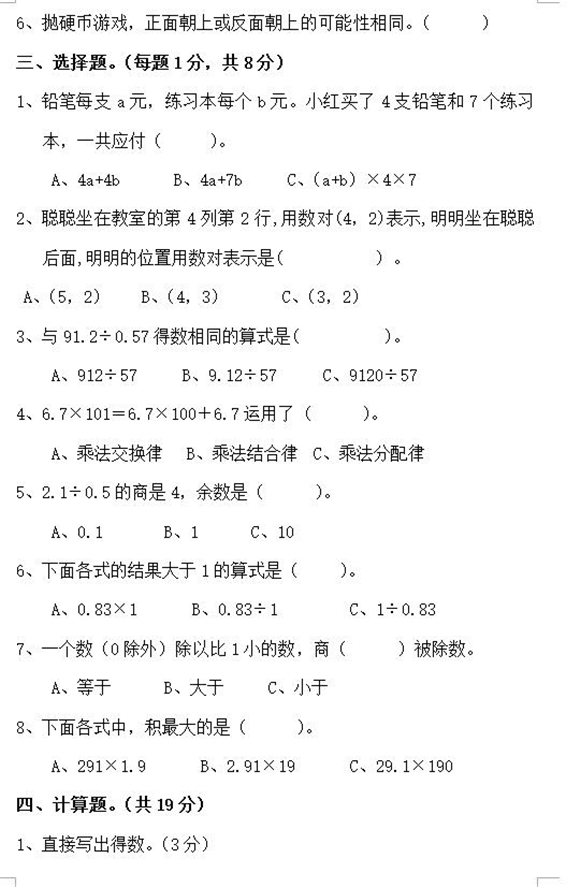 宁波小学五年级下册数学期中试题(二十)(3)