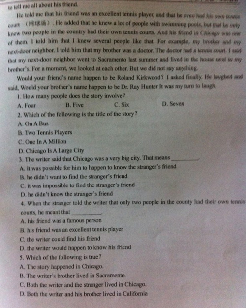 2007年南京外国语学校英语综合能力测试试卷(10) 南京奥数网整理 2013-06-13 14:16:31 >>2007年南京外国语学校英语综合能力测试答案 【相关阅读】 家长眼中的南外:“实力”与“财力”决定孩子出路 南外英语综合能力测试试题及答案汇总(2008年-2012年) 冲外宝典:南外英语综合能力测试数学试题相关词汇表汇总 南外优录部分小学名单及人数对比(2011年-2013年) 南外小升初考试历年录取分数线(2007年-2012年) 首页 上一页 下一页 尾页