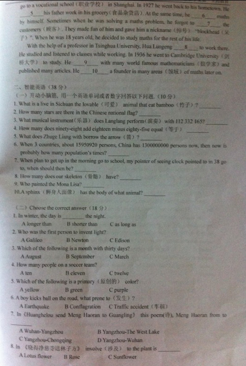 2007年南京外国语学校英语综合能力测试试卷(2)