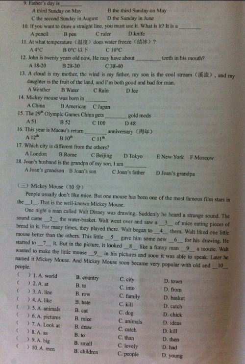 2007年南京外国语学校英语综合能力测试试卷(3)
