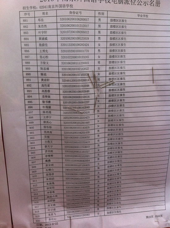 2013年南京外国语学校电脑派位公示名单---原鼓楼区 南京奥数网整理 2013-06-22 15:18:56 南京奥数网:2013年南京外国语学校电脑派位公示名单---原鼓楼区。 首页 上一页 下一页 尾页