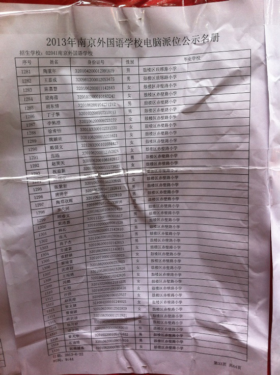 2013年南京外国语学校电脑派位公示名单---原鼓楼区(11)
